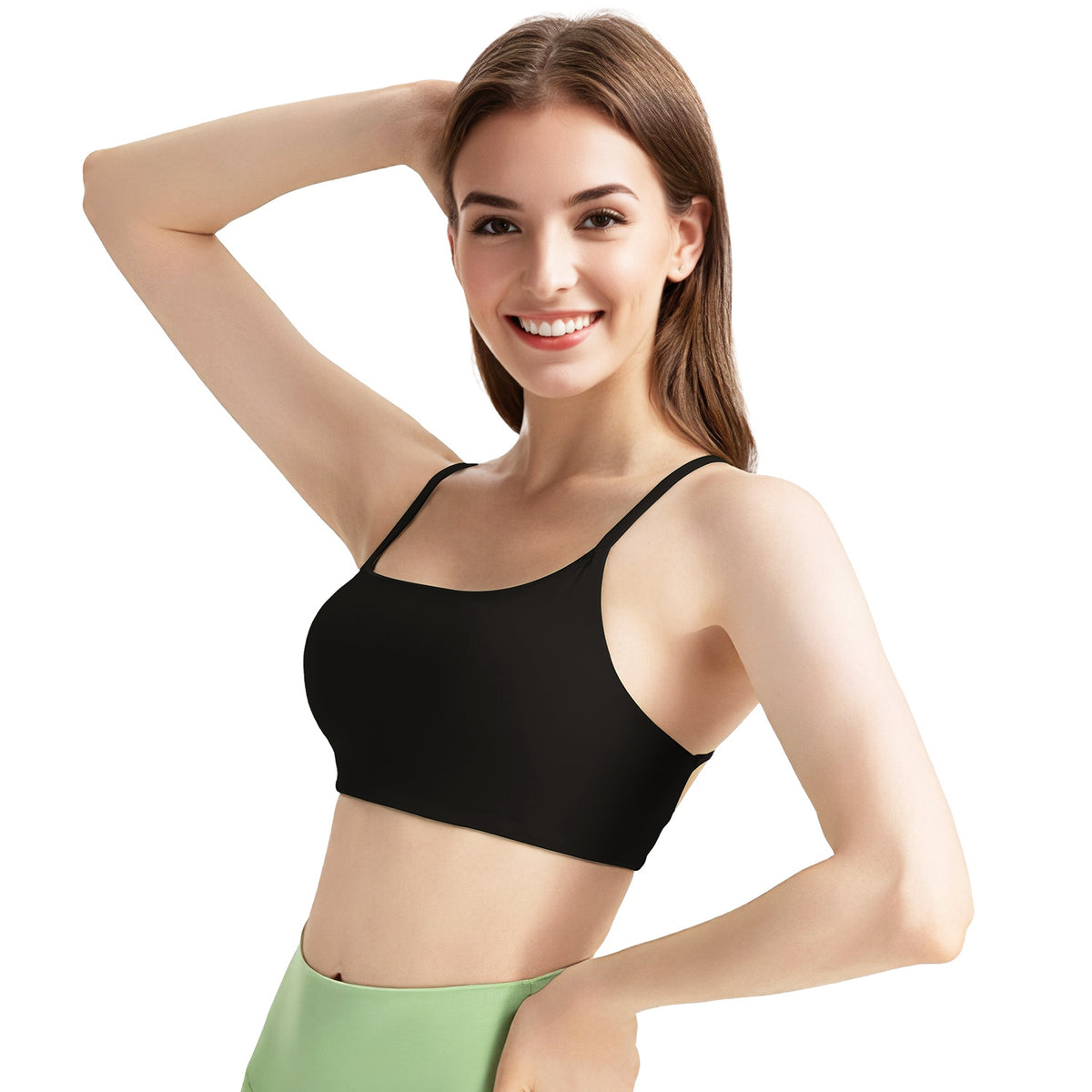 1Pc Women Cross Back Sport Bras Padded Strappy Crop Open Back Low Impact Bras Sexy Fitness Tank Tops With Removable Pads Thin Straps For Gym Yoga Workout Running - Black / L